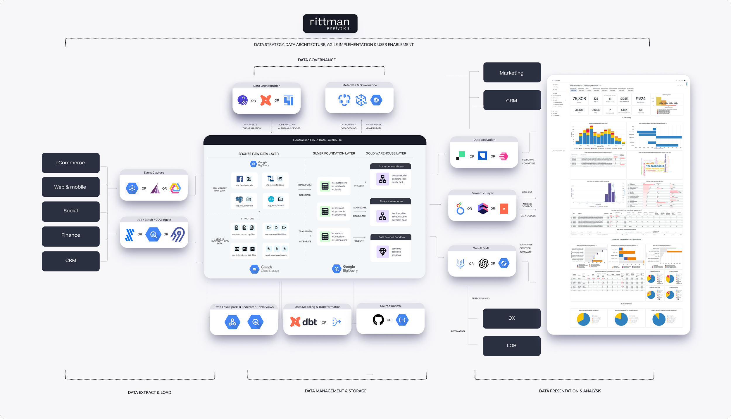 Rittman Analytics is a Google Cloud Partner that specialises in data warehousing, data lakehouses and the modern data stack. We can help you you centralise your data sources, scale your data analytics capability and enable your end-users and data team with best practices and a modern analytics workflow.