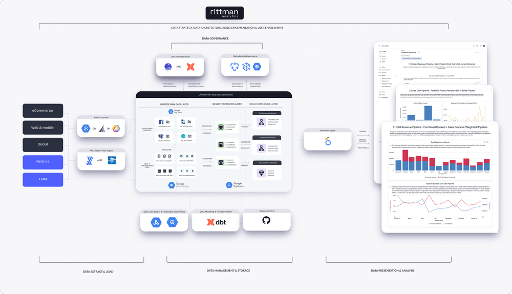 We’re authorised delivery partners for Google Cloud along with Oracle, Segment, Cube, Dagster, Preset, dbt Labs and Fivetran and are experts at helping you build financial analytics and scalable, cloud-hosted data stacks that are designed for your organisation’s needs, use-cases and budget.