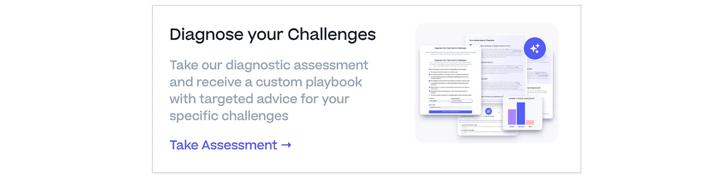 You can read more about our approach to modernising data teams and data platforms on our website, where you can also take our diagnostic assessment and receive a custom playbook with targeted advice for your specific challenges.