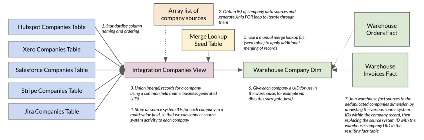 How we handle deduplication and merging of company and contact data is just one of the design patterns we’ve included in our RA Warehouse for dbt framework that we’ve made available as free to use, open-source code in a public repo on our Github site.