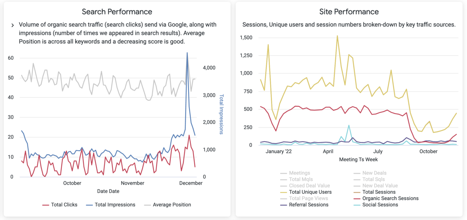 A few weeks ago when checking our company website stats in Looker, I noticed that total sessions had dropped significantly since we updated it back in August.