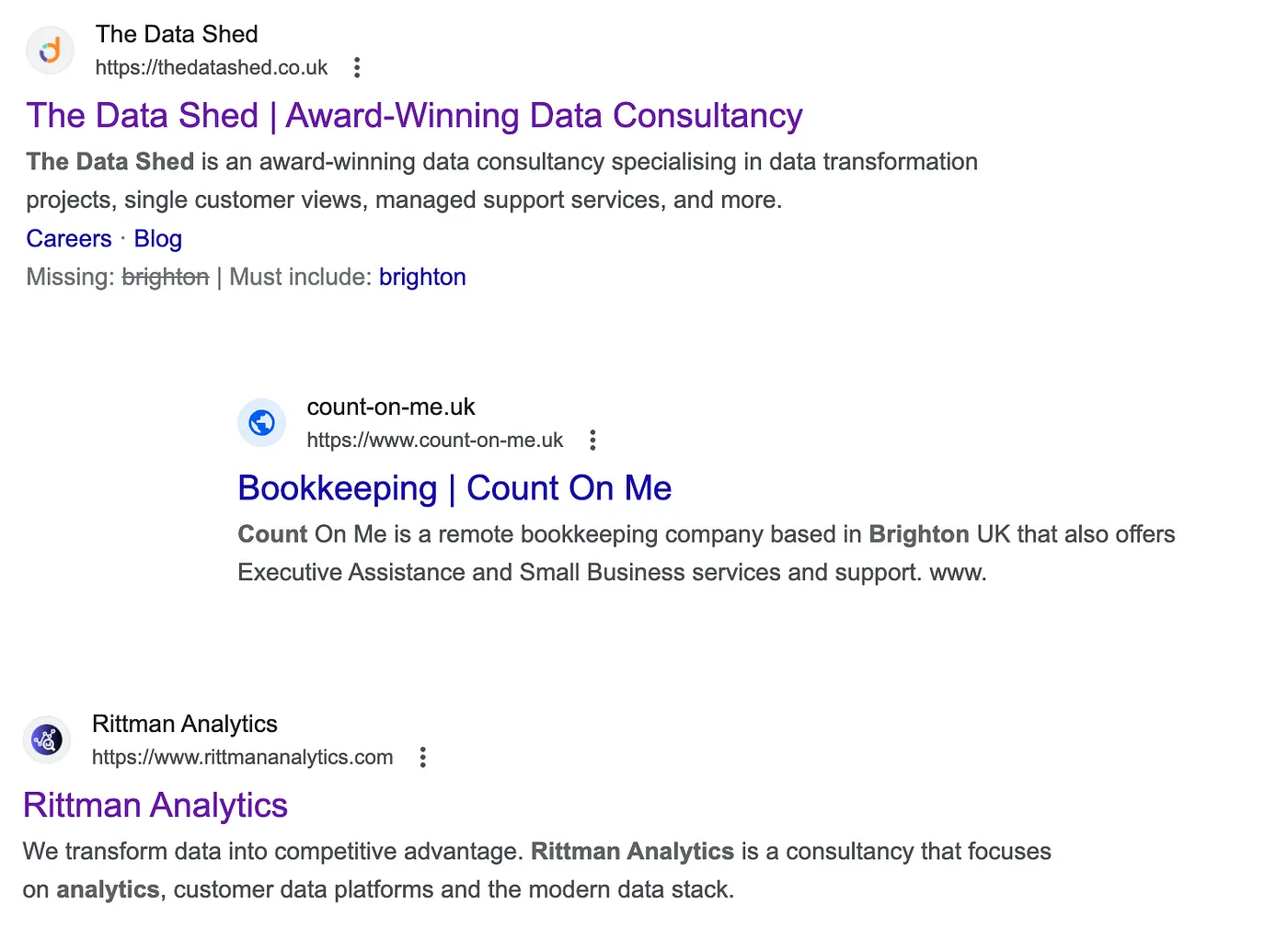 Dataform are in-fact a now-defunct product startup building a competitor to dbt that has recently been incorporated into Google Cloud Platform, so no idea why they were the next recommendation for these services. Most bizarrely, Count doesn’t even exist except as the tag-line used by a local book-keeping service, and its not until I prompt ChatGPT with our actual company name that it finally endorses us; I can see LLM optimization joining SEO optimization as an essential part of our future online marketing strategy.