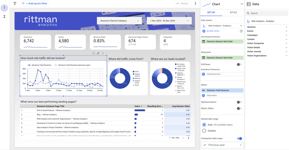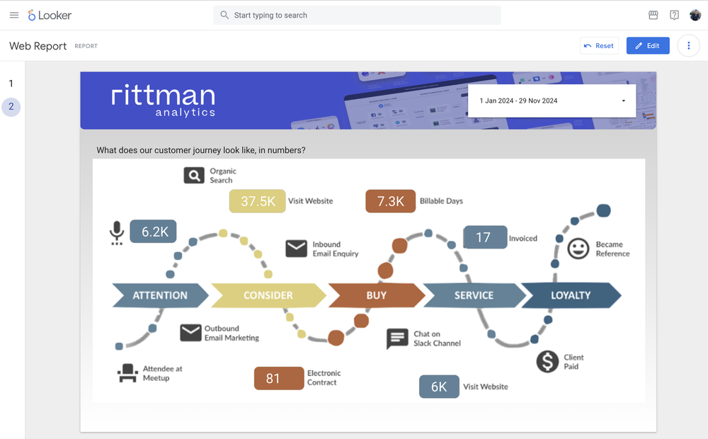 Rittman Analytics is a boutique data analytics consultancy that helps ambitious, digital-native businesses scale-up and upgrade their data analytics capabilities using tools such as Looker and Looker Studio Pro.